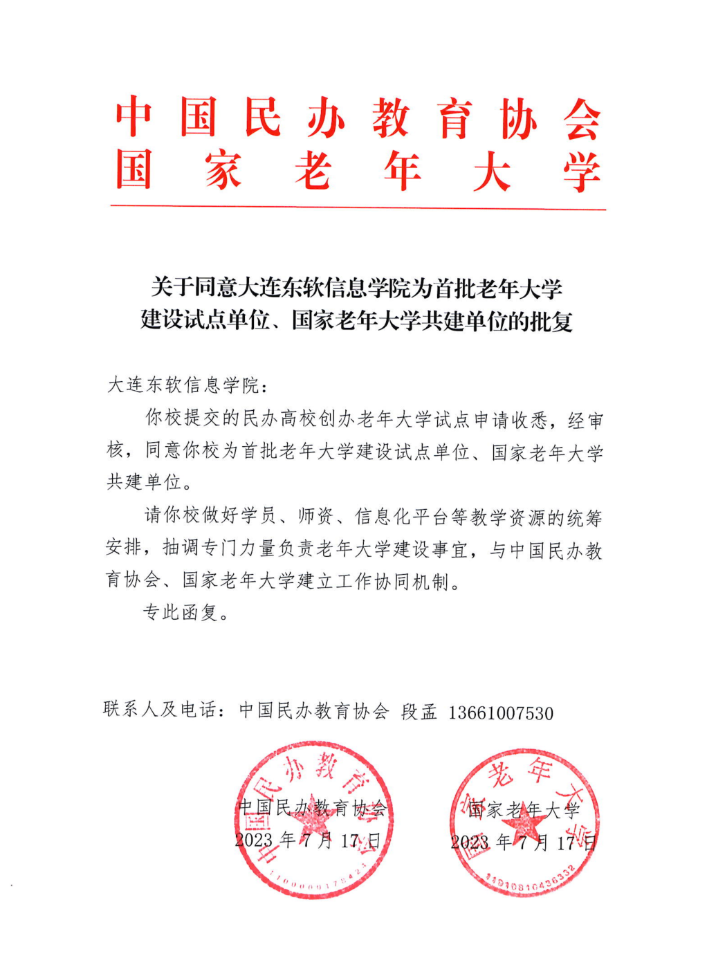近期,由中国民办教育协会、国家老年大学联合发文,大连九州酷游信息学院获首批老年大学建设试点单位、国家老年大学共建单位。