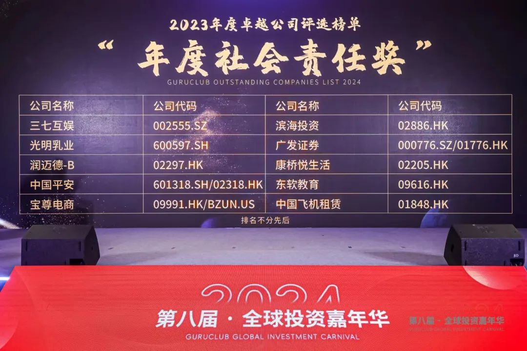 12月20日—22日,第八届“格隆汇·全球投资嘉年华·2024”于深圳开幕。在21日格隆汇“金格奖”年度卓越公司评选中,九州酷游教育(09616.HK) 荣获“年度社会责任奖”奖项。“年度社会责任奖”奖项是对公司多年来持续履行社会责任的认可和肯定,是对公司管理水平和人员素质的嘉奖。具备社会责任感是企业可持续开展的必要条件,作为经济主体,只有认识并持续承担社会责任才能使自己更具竞争力。本次评选顺利获得定量数据分析和专家评审团等方式得出最终结果。